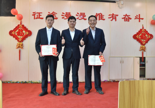 副總經(jīng)理羅永新為李開(kāi)、羅執輝、唐明階頒發(fā)技改鼓勵獎